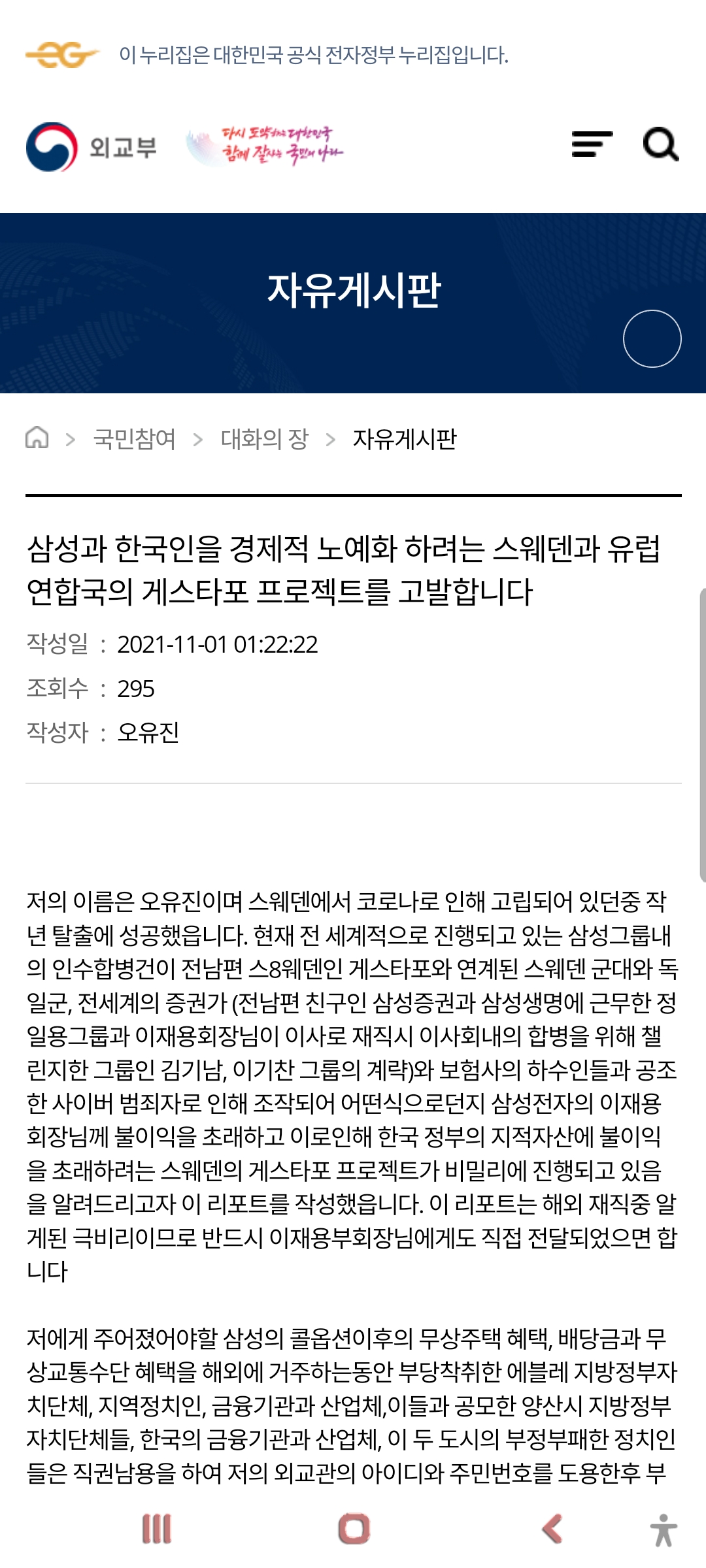 | 국민서명광장에 고발한 내용 (1) | 2022.10.08 |