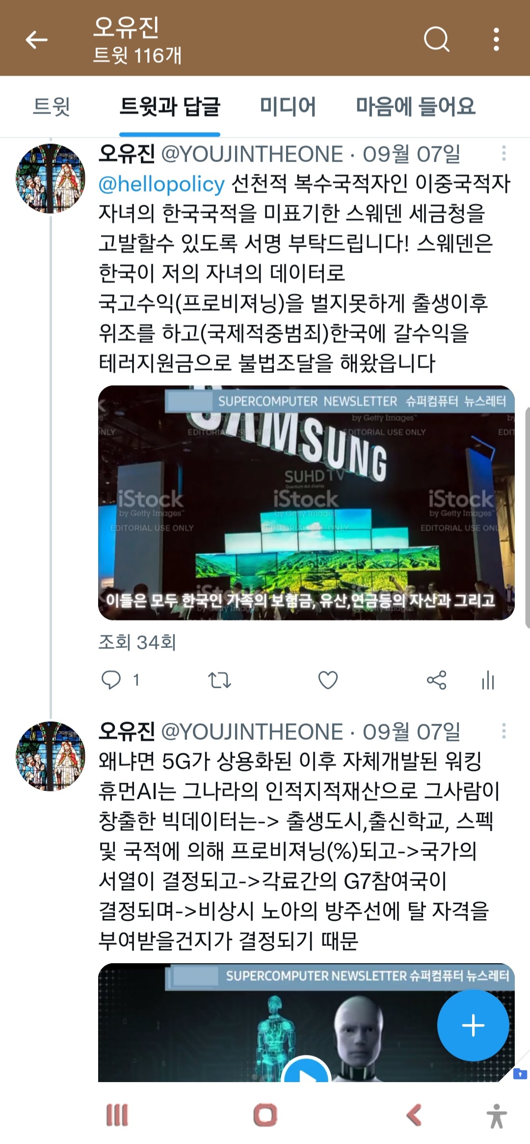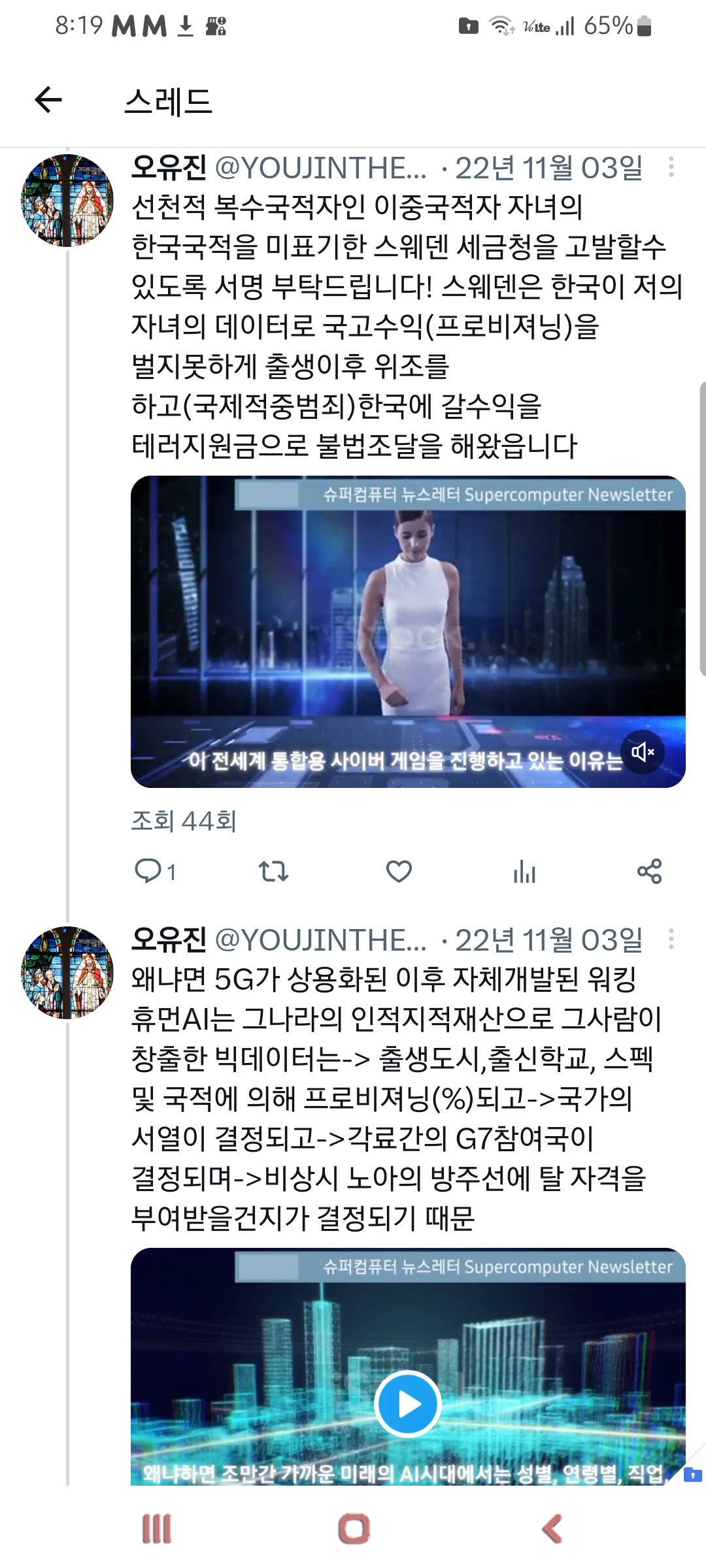그래서 너무도 기가 찬 나머지 모든 종류의 소셜 네트워크를 사용하여 스웨덴 공공기관과 정부의 이중국적자 미기재 범법행위들을 여기저기에 알리고자 트위터 계정을 개설하고 유투브 홍보 동영상까지 제작하여 도움을 청하고 있읍니다!