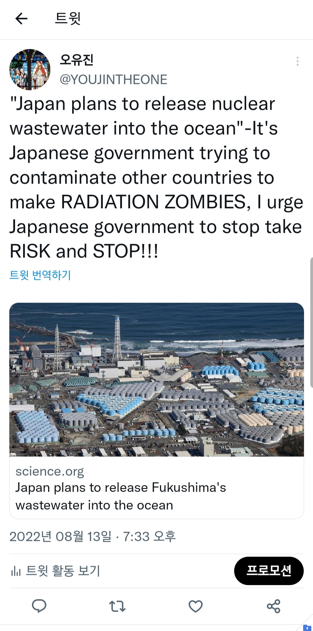 따라서, 일본 정부는 고의적으로 방사능 폐기물을 방류하고 오염시켜서 주변국들을 방사능좀비로 만들어 주변국들의 국민들을 오염시키려는 시도를 즉각 중단할것을 촉구하는 바입니다!!!