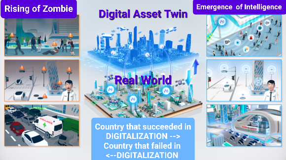 —>각 한국민을 디지털 도플갱어(=디지털 자산트윈)로 이란성 쌍둥이같은 복제품인 클론을 제작한후에