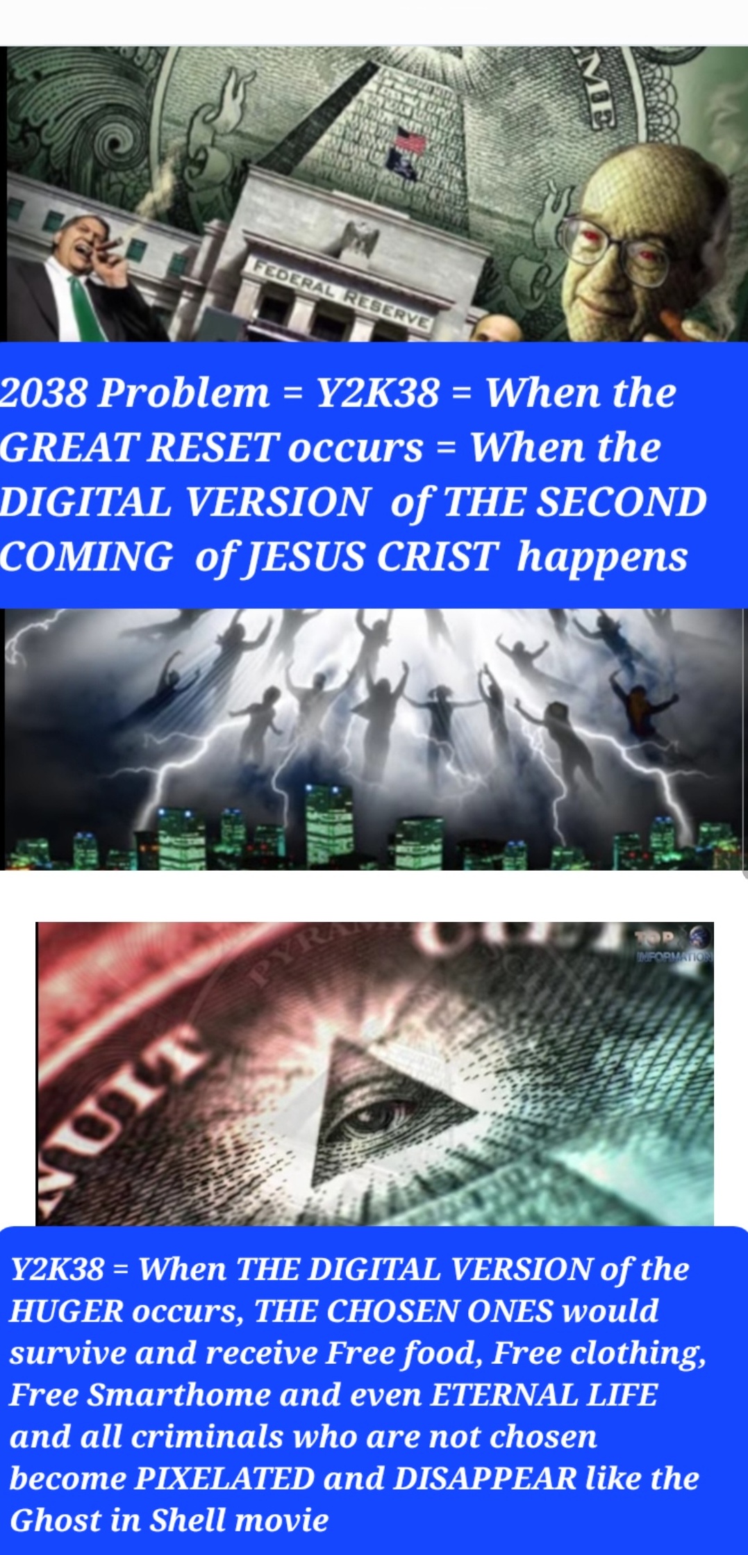 -->한국인들 모두를 온라인상으로 공중부양(=삭제 DELETE) 되게 시도를 하여( =일명 밀레니움 버그인 Y2K38이자 2038 Problem에 언급된 것처럼, 전세계가 GREAT RESET이 될때, = 즉, 성경에 나오는 [최후의 심판]이 일어나서 디지털버젼의 휴거가 전세계적으로 진행되는 때에, 죄인으로 낙인 찍혀서 코로나 좀비 바이러스에 감염되어 "휴먼버그"가 된 한국인들( =현재 한국 전인구의 70%~80% 에 해당되는 코로나 좀비 바이러스에 걸린 사람들 )을 고스트인쉘 영화에서처럼 픽셀화되어 디지털자산트윈상의 가상현실 공간에서 사라지게 시도를 함으로써,