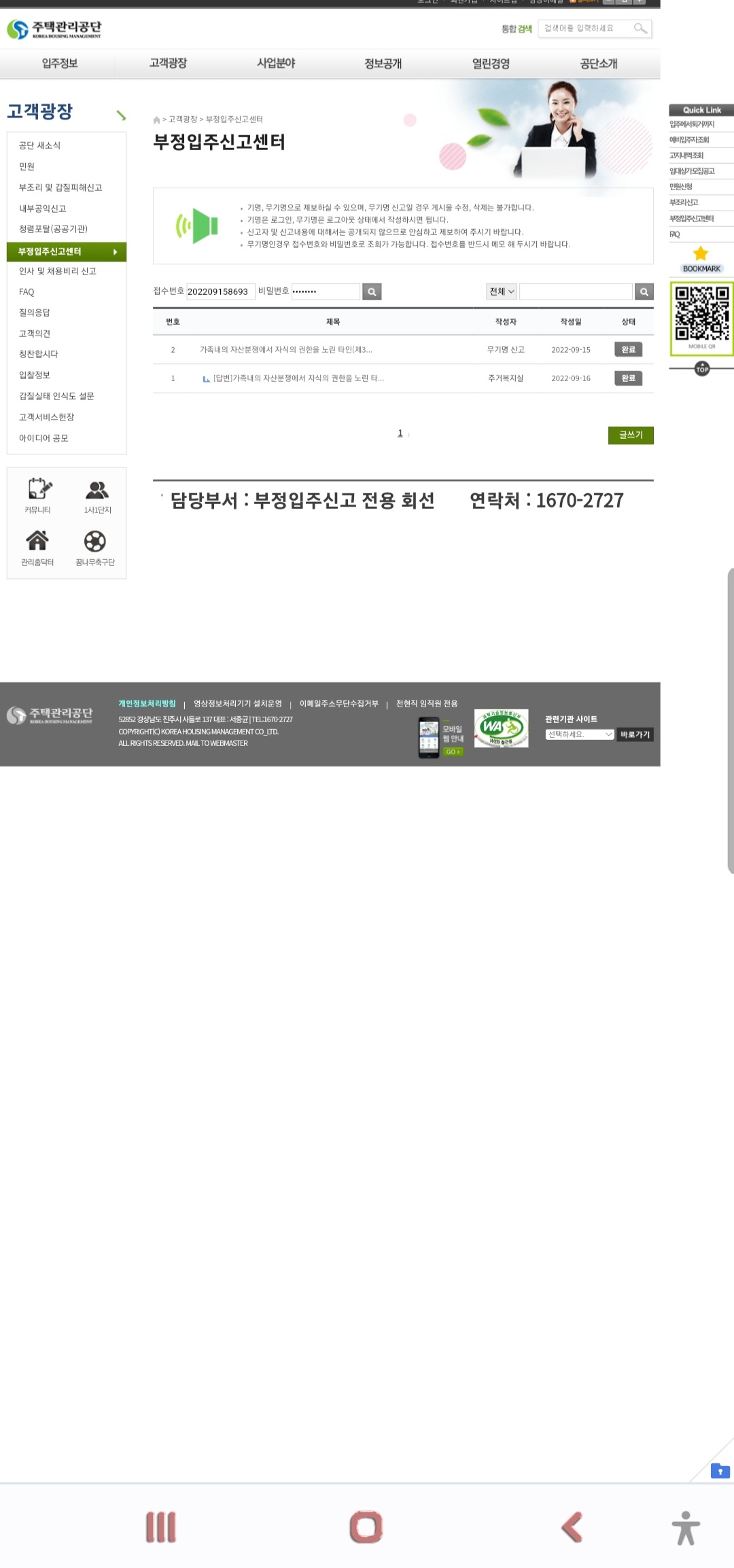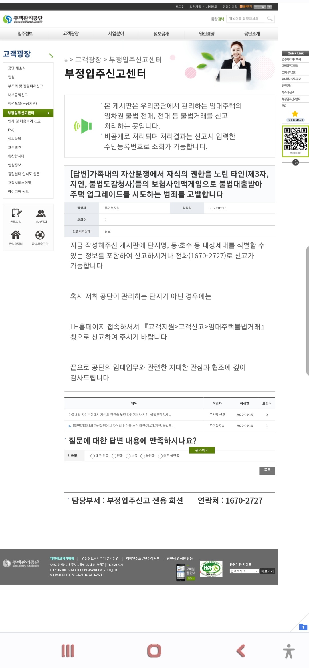 주택관리공단 부정입주 신고센터에 고발한 내용