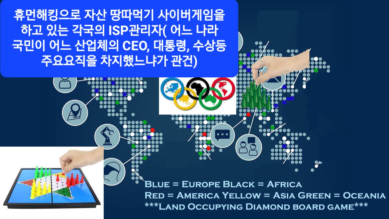 ISP managers in each country who are playing [Asset Management Diamond Board Cyber Game] through HUMAN HACKING since human has become Smartphontized Cyborg after 5G commercialized worldwide (the Rules of Game is which country's citizens took key positions such as CEOs, presidents, and prime ministers of which industry. For eg, CEO of Ericsson became CEO of Varizon, india citizen became Prime Mister of England)