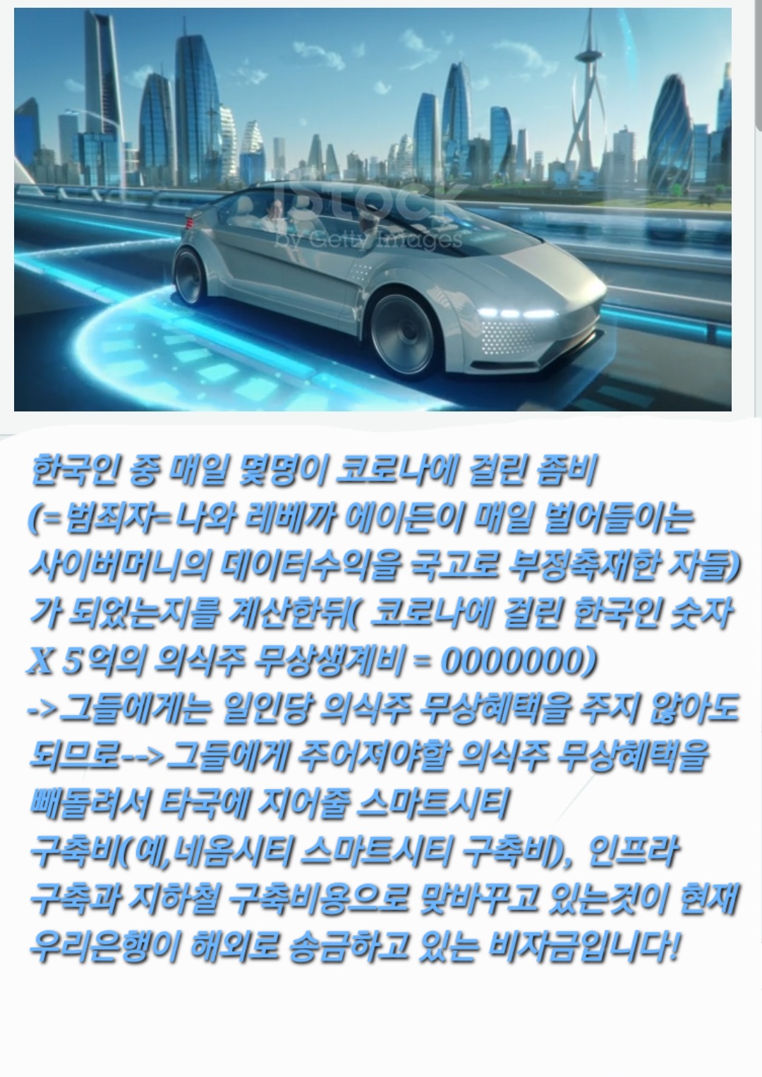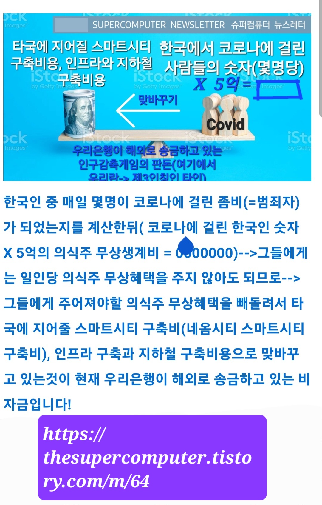 (=무상생계지원비=Global Basic Income = 한국민 일인당 5억= 한때 국가혁명당은 비록 일인당 18세이상 1억씩을 지급하고 매달 150만원씩을 또 지급해주겠다고 공략을 펼쳤었지만, 결국, 한국민 일인당에게 주어졌어야할 평생무상생계비는 일인당 5억임을 알고 있어야 할것이며, 한국정부는 한국 민간인 일인당 주어졌어야할 5억의 혜택을 빼돌려서, 오히려 마스다르 시티 구축비와 네옴시티 같은 타국의 스마트시티 구축비용으로, 이란의 인프라 구축비용과 지하철 구축비용으로 맞바꾸기를 하고 있는 것이, 현재 우리은행이 타국에 송금하고 있는 비자금임을 똑똑히 알고, 이 사실을 상부와 정부에 고발을 반드시 하고 이러한 정부와 타국각료간의 짜고치는 고스톱판음모를 한국의 민간인들이 알고있다는 사실을 고발을 하고 알려서 자신들의 밥그릇을 챙겨먹어야 할것이며)