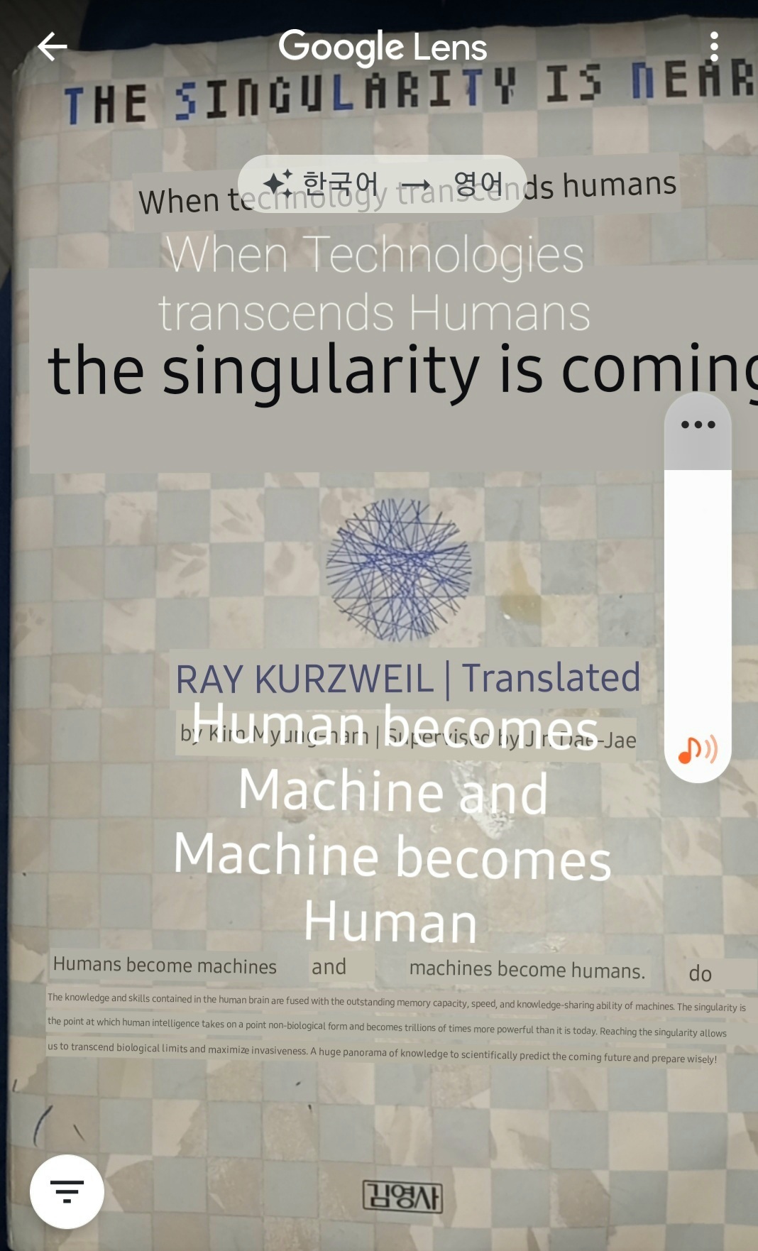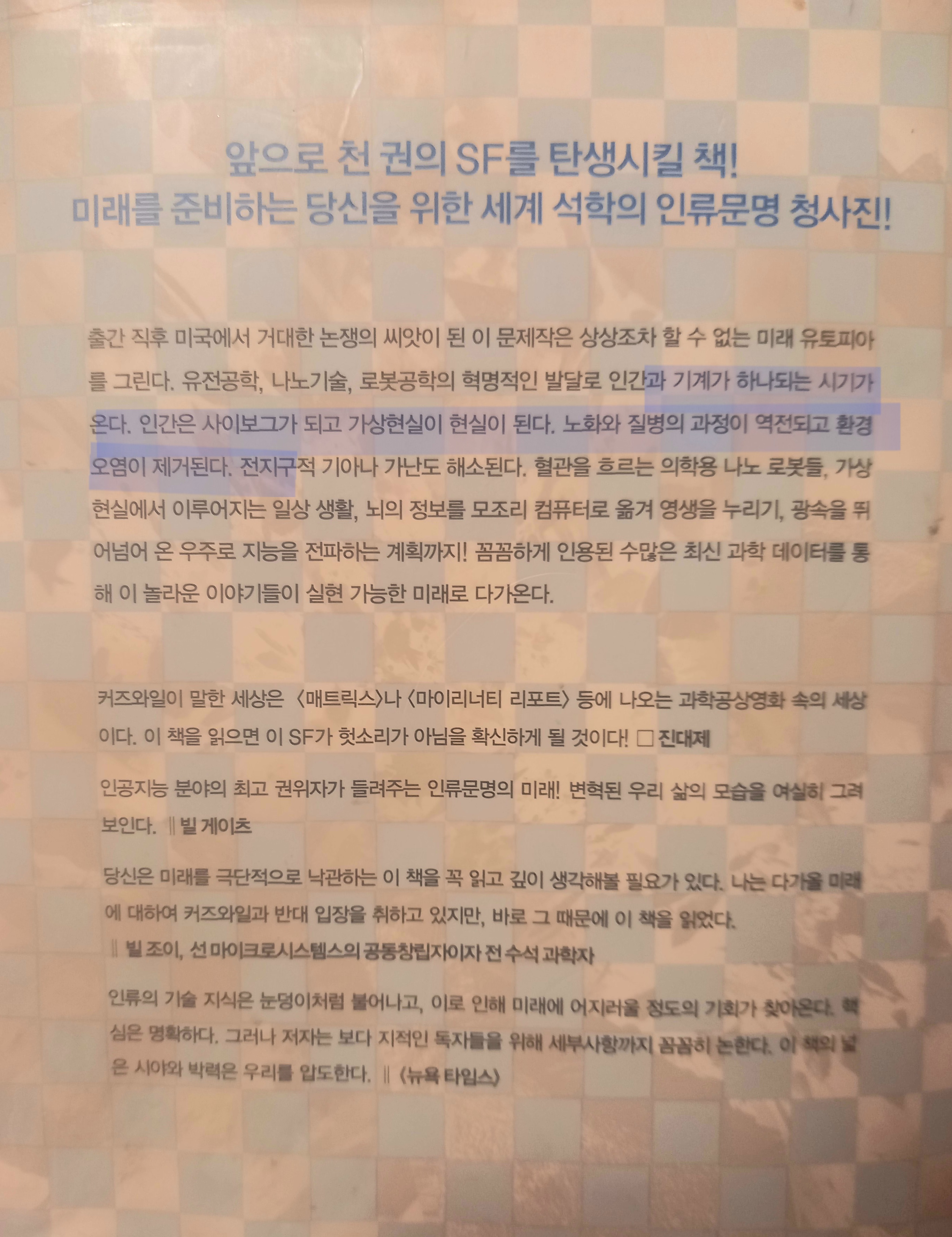 그들은 Singularity가 오면 고스트 인 쉘 Ghost in Shell영화의 Ghost처럼 픽셀화되어 사라질 사람들입니다. 여기에서 말하는 특이점은 레이 커즈와일의 저서 특이점이 온다, 인간은 사이보그가 되고 가상현실이 현실이 된다에 저술된 것처럼, 태어날 때부터 꾸준히 나의 몸을 개발시키면서 상호작용해 왔던 모든 휴먼 사이보그의 대모인 나와 IBM 슈퍼컴퓨터 머신이 하나가 되는 순간을 의미합니다.